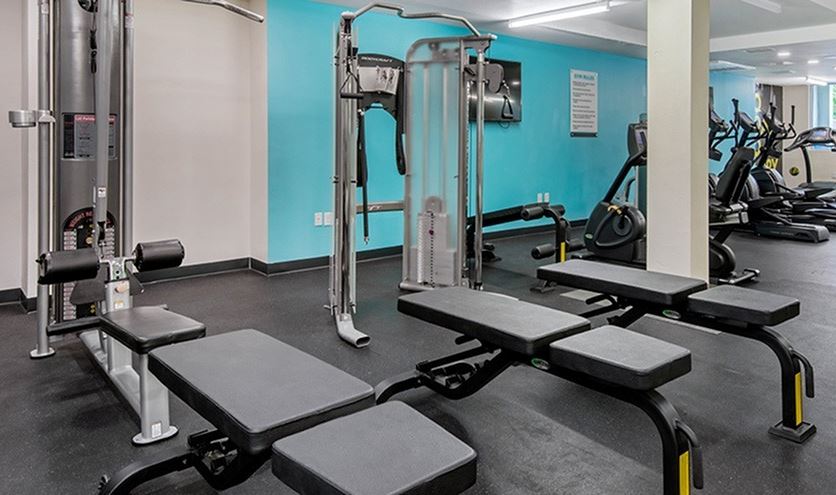 - Stay fit on your own schedule in the 24-hour fitness center equipped with cardio equipment, free weights, and a yoga room.