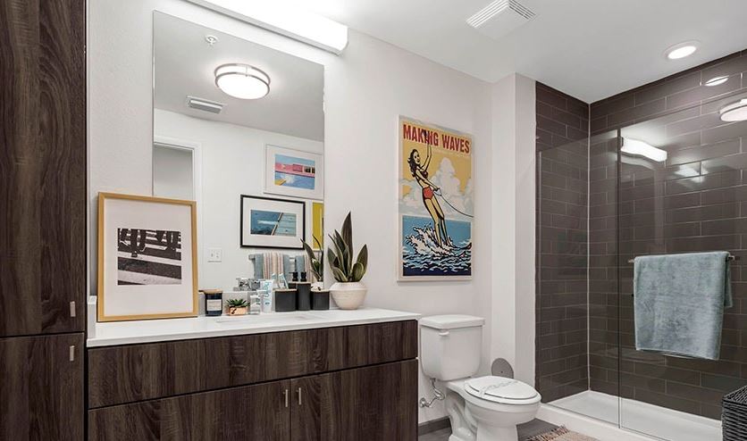 - Get ready for class in your private bathroom featuring walk-in waterfall showers, marble countertops, and modern fixtures.